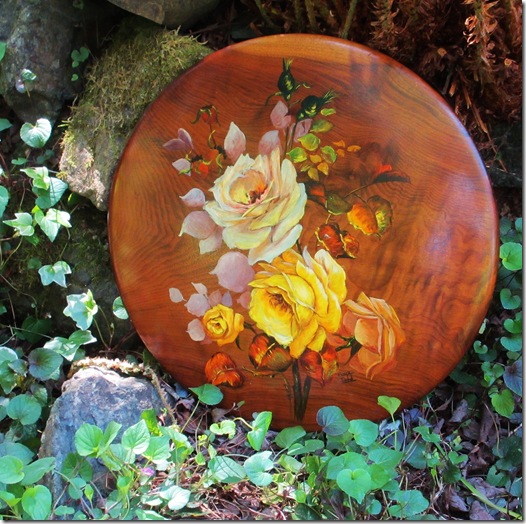 Mom was a true artist. She had a gift. The photo below is one of Mom’s paintings – acrylics on myrtlewood. Her work was quite in demand and sold all over the world. She supplied artwork to several myrtlewood shops in the area and was paid a pittance. The money wasn’t as important to her as the art.